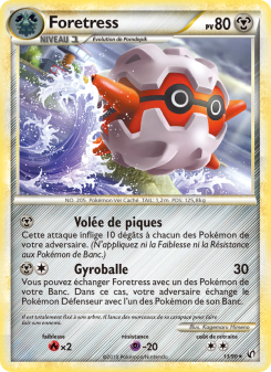 Vous pouvez échanger Foretress avec un des Pokémon de votre Banc. Dans ce cas, votre adversaire échange le Pokémon Défenseur avec l’un des Pokémon de son Banc.